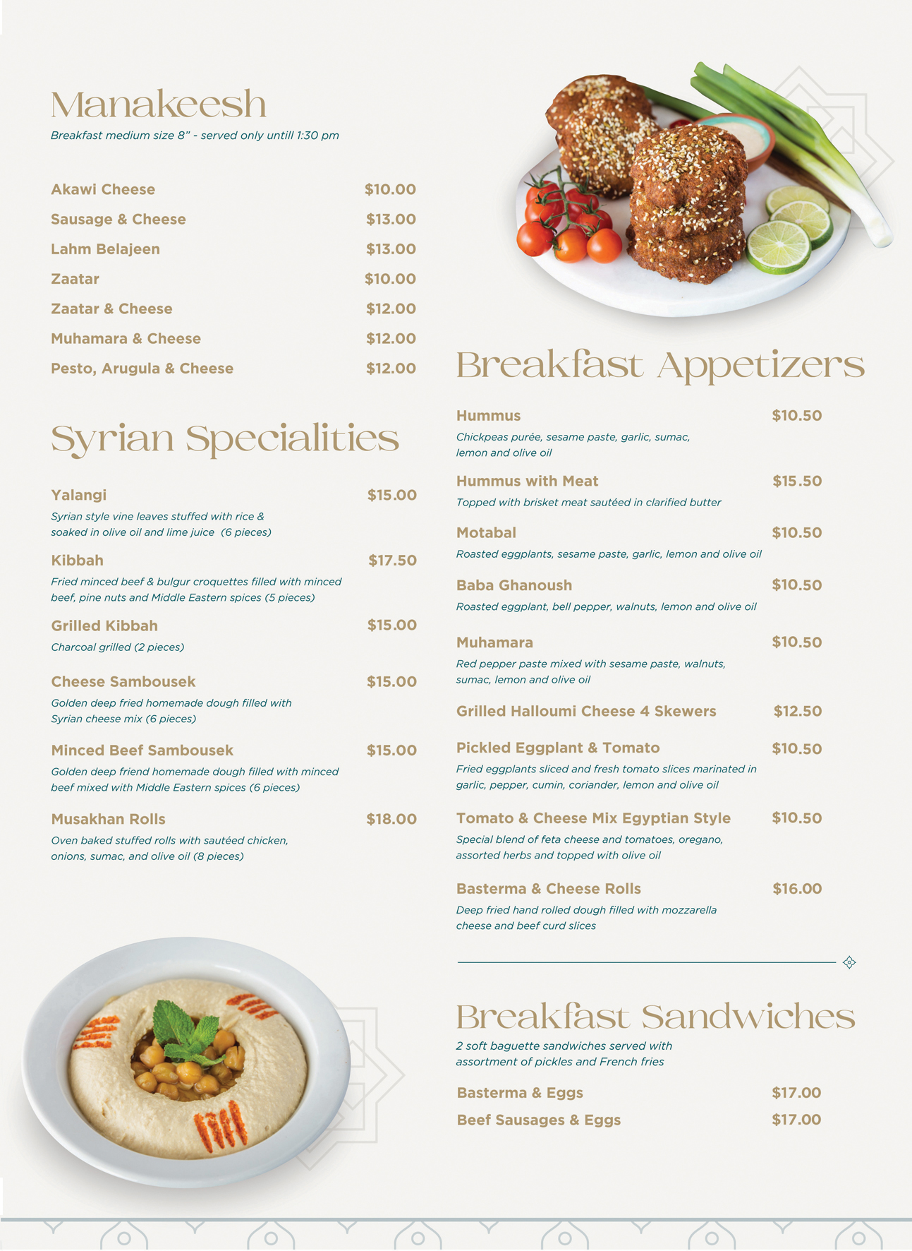 our menu